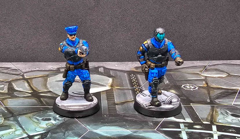 In looking to build a bank of miniatures for this game, I’m starting out with some police. I’ve finished 7 so far, all of which are printed from STLs that were designed by Titan Forge Miniatures.