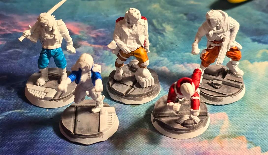 Following on from yesterday’s Cyberpunk characters, I’ve painted up yet another 5 characters. As a reminder, I’d decided not to paint these as defined warbands, but rather as a bank of characters that can be drafted into various different crews.