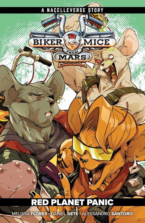 Hot on the heels—or in this case, wheels—of Nacelleverse Vol. 1: Biker Mice from Mars & RoboForce, the most radical animation icons to ever ride across the Elysium Plains—aka the Biker Mice from Mars—are back and revvin’ it up in a brand-new tale from the genre-bending imagination of writer Melissa Flores (Power Rangers Prime) and artistic powerhouse Daniel Gete (Skin Police)! The Red Planet is in revolt . . . and hard-charging rebels Throttle, Vinnie, and Modo have joined up with Mars’ Freedom Fighters to fight the invading army of alien Plutarkians. But when a new, entirely unexpected threat to Mars rears its ugly head, threatening the existence of their families, friends, and the fourth planet itself, the Biker Mice find themselves facing a galaxy-spanning menace with ties to RoboForce on Earth as well as the Plutarkian homeworld! Don’t miss the adventures of everybody’s favorite revolutionary rodent trio before they arrived on planet Earth in a brand-new, epic adventure! Collects Biker Mice from Mars (2025) #1–4.