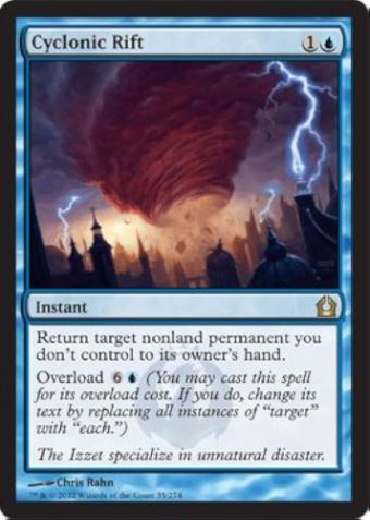 Cyclonic Rift is the most demoralising “fair” card ever printed. It doesn’t kill anyone or win the game on the spot. It just resets everyone except you, and it does it at instant speed, right when the table feels like it’s finally getting somewhere. The rage is all about emotional timing. Rift punishes the moment people start having fun. It’s the spell equivalent of flipping the Monopoly board because someone else built a hotel. I’m not above this sentiment.