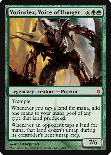 I feel that Vorinclex tries to create advantage, but mostly just creates resentment. Doubling your mana is strong, but the real fury comes from the other half of the text: turning every opposing land into a liability. Players don’t just fall behind; they fall behind twice as fast, and they know exactly who to blame. Vorinclex might not win the game, but it’s always sure to win the table’s collective ire.