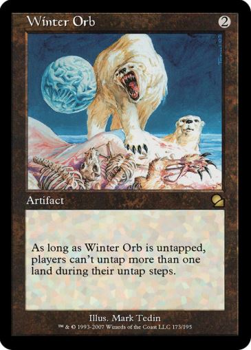 Winter Orb is the slow bleed of Commander. It doesn’t lock the table outright; it just makes every turn feel like wading through syrup. You’re technically still playing the game, but the game has become a chore. The table’s mood shifts from lively to lethargic in a single upkeep. Winter Orb doesn’t enrage people immediately; it wears them down until they’re angry at the experience rather than the card. It’s a grindstone.